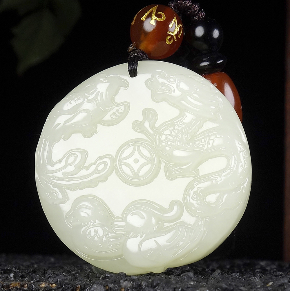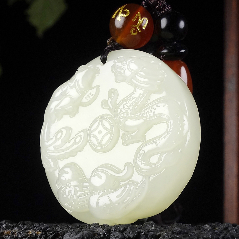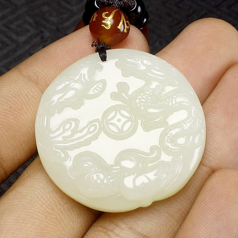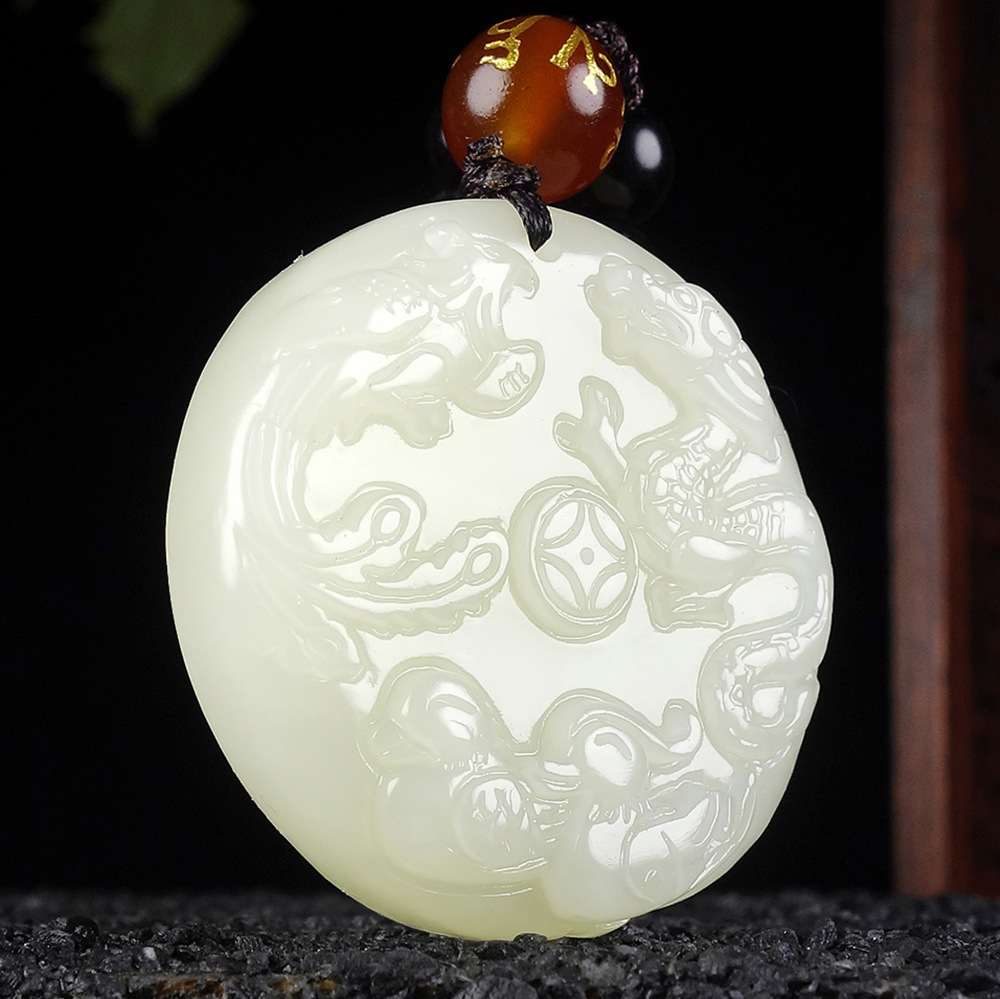 二、竞拍标的: 新疆和田玉龙凤配吊坠男女款精雕龙凤呈祥和田玉龙凤配