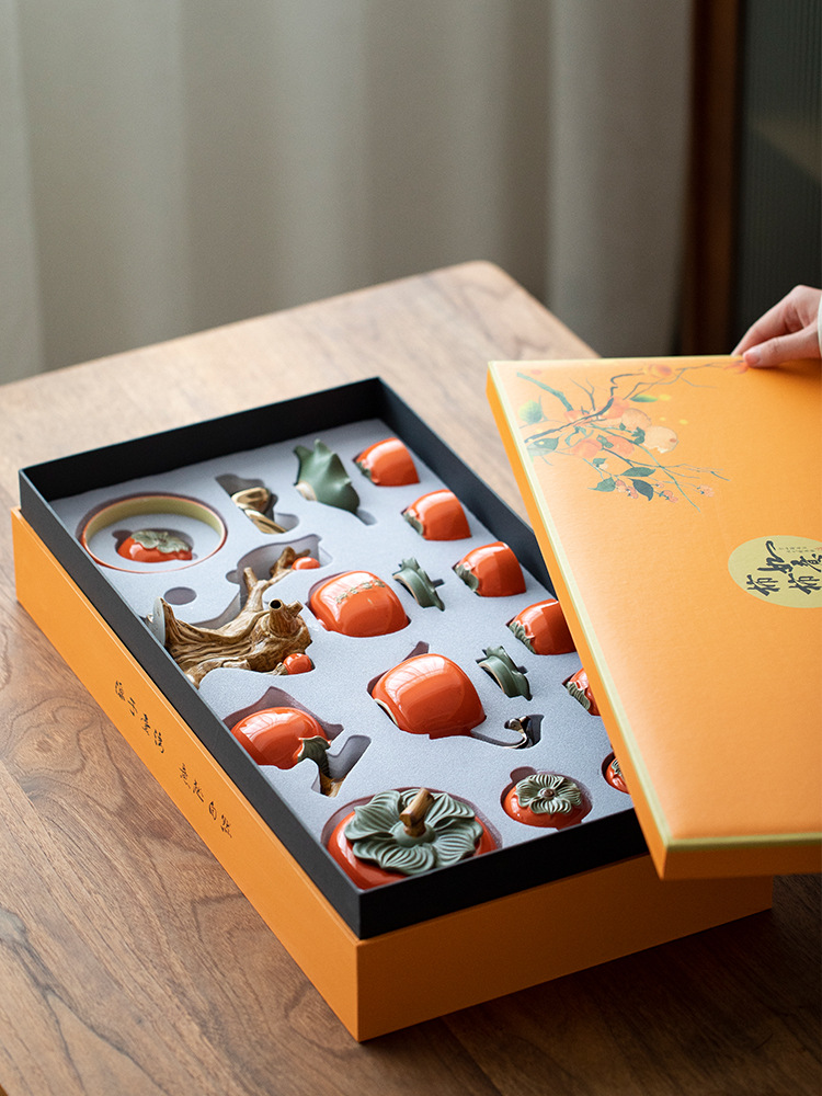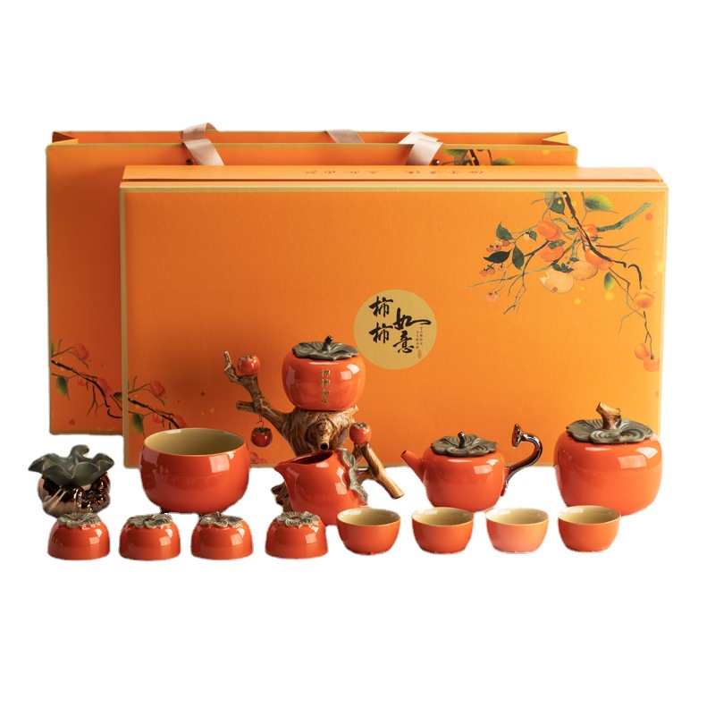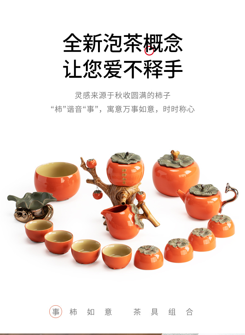 第一次 Z079柿柿如意懒人自动茶具套装柿子泡茶器高档礼盒装