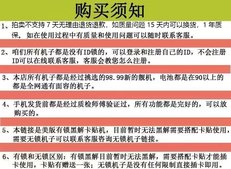 八、标的物是美版正品带锁二手手机,以实物现状为准,处置机构保证正品,假一赔三。慎重决定竞买行为,竞买人一旦作出竞买决定,即表明已完全了解,并接受标的物的描述和承诺